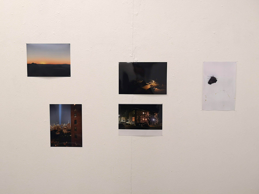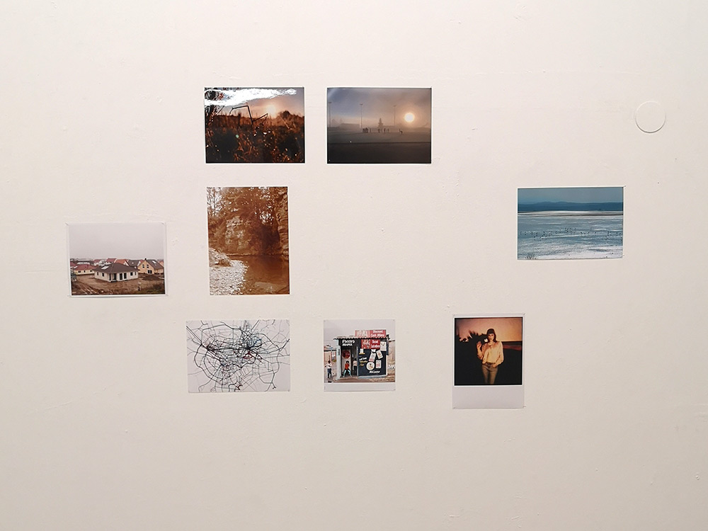 uses landscapes as tools to consider ourselves in relation to the world, personal histories, and interpersonal connections outside of screen-space. Organized by Kim Collmer, the artist asked a selection of people to submit an image of a "carried landscape" and also a description of their relationship to it. Over 60 images were sent in. The work was then printed and displayed in loose groups based upon the time of day, from morning to night and finally dream spaces. On the floor Collmer activated the room by creating shapes using indexes from travel atlases.